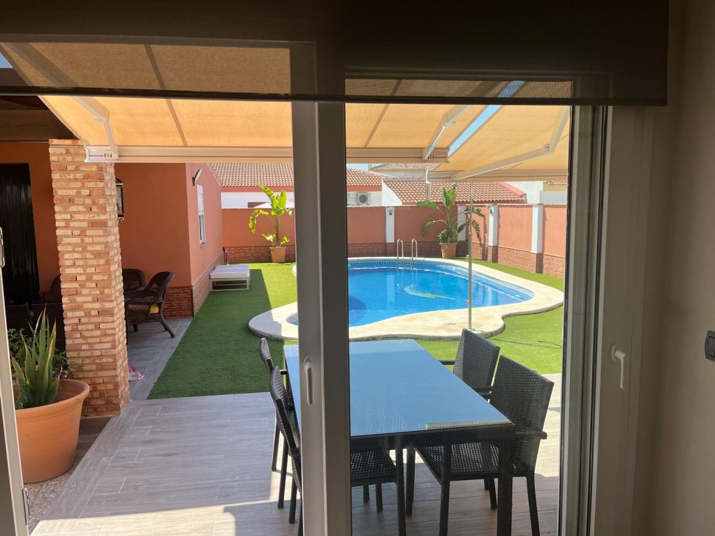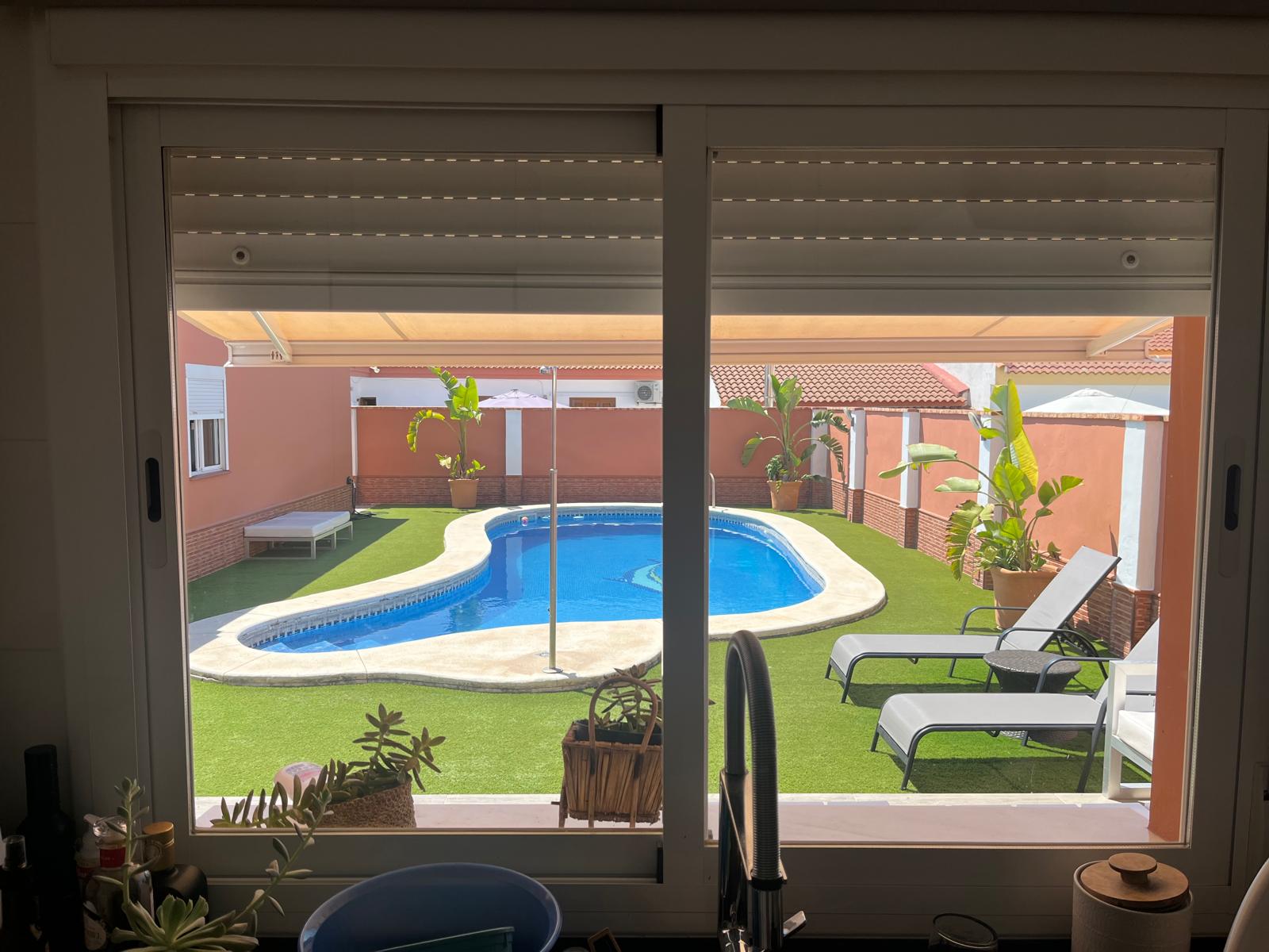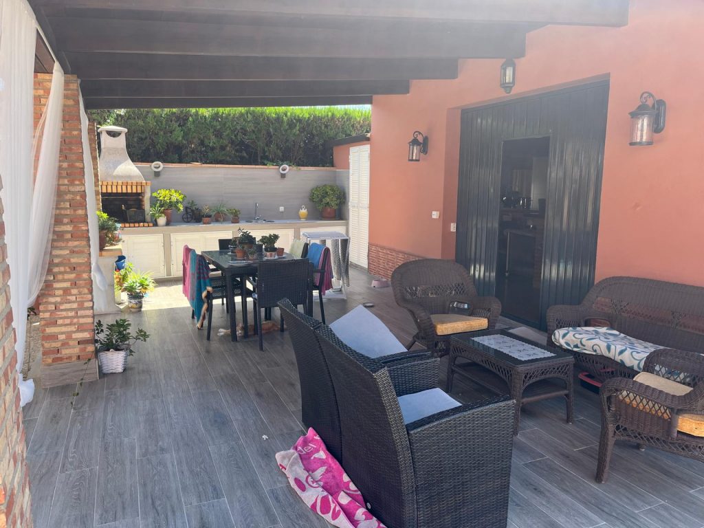 Excelente vivienda en Matalascañas, a pocos minutos de la playa, con parcela de 600 m2, con tres plantas, cuatro habitaciones y dos cuartos de baños completo. Salón amplio con terraza al jardín. Sótano con bodega. Garaje en superficie con 70 m2. Se vende totalmente amueblada. Piscina propia dentro de la parcela.